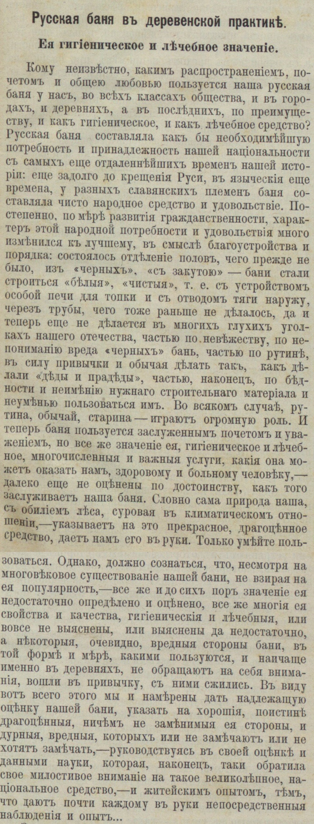 РУССКАЯ БАНЯ В ДЕРЕВЕНСКОЙ ПРАКТИКЕ